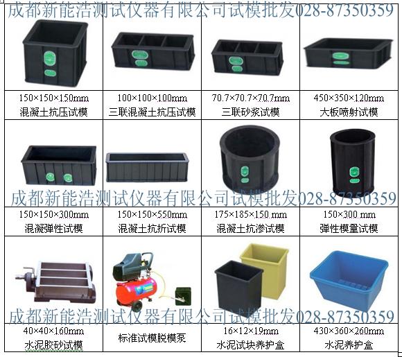 1、150方****(ABS)塑模: (每箱24只) 常用品种 2、150方半加厚塑模: (每箱24只) 3、150方普塑模: (每箱24只)常用品种 4、150方**普塑模: (每箱24只) 5、150方**便宜的:(没商标) (每箱24只) 6、150方可拆装塑模: (每箱24只) 7、150方****(ABS)绿色塑模: (每箱24只) 8、70.7三联塑模: (每箱30只) 9、70.7三联无底塑模: (每箱36只) 10、 100三联塑模 (每箱24只) 11、100三联塑模 (每箱24只) 12、100三联外观无筋型塑模 (每箱24只) 13、抗渗塑模: (每箱18只) 14、抗渗(ABS)绿色塑模 (每箱18只) 15、100方****塑模: (每箱30只) 16、100方普通塑模: (每箱60只) 17、100*300塑模: (每箱12只) 18、150*300塑模(弹模): (每箱12只) 19、直径150*300塑模(弹模): (每箱12只) 20、100*400塑模(抗冻): (每箱12只) 21、150*550抗折模: (每箱6只) 22、抗裂塑模: (每箱3只) 23、大板塑模: (大箱6只,小箱3只) 24、100*515干缩试模:(大箱12只,中箱6只,小箱3只) 25、大八字塑模: (每箱六只) 26、黑色养护盒: (每箱20只) 27、红色养护盒: (每箱20只) 28、黑色大水槽: (20只/箱) 29、白色大水槽: (20只/箱) 30、70*80*30砂浆渗透塑模: 31、电通量试模:直径100*50塑模 直径50*100塑模 32、36*60*60净浆流动度塑模: 33、65*75*40稠度仪塑料圆模